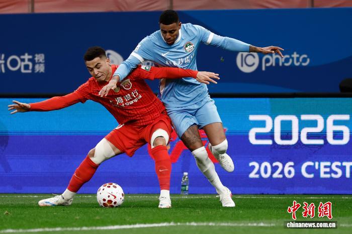 3月7日,河北脚球俱乐军队球员正在角逐中争球。当日,2026赛季华夏脚球超等联赛第1轮角逐中,上海海港队(白衣)主场1比2没有敌河北脚球俱乐军队。 中新社记者 殷坐勤 摄